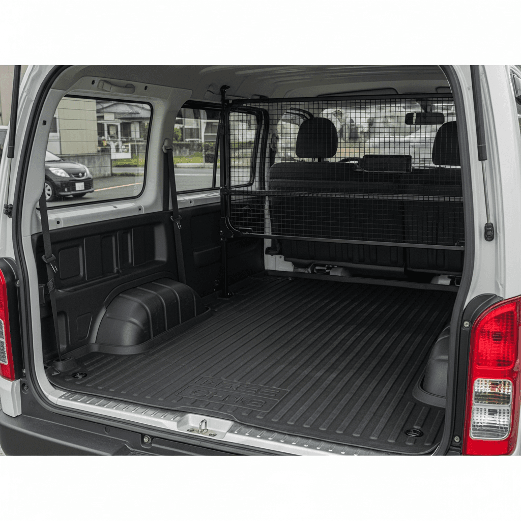 ハイエーストラックは商用利用が前提。荷室に保護ゴムマット+仕切り板が装備されていれば「荷室ダメージ最小限」の証明に。実用性重視の商用車で+5~8万円の評価UP。