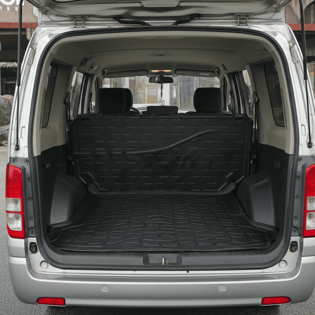 ハイエースバンは商用利用が前提。荷室に保護ゴムマット+仕切り板が装備されていれば「荷室ダメージ最小限」の証明に。実用性重視の商用車で+5~8万円の評価UP。