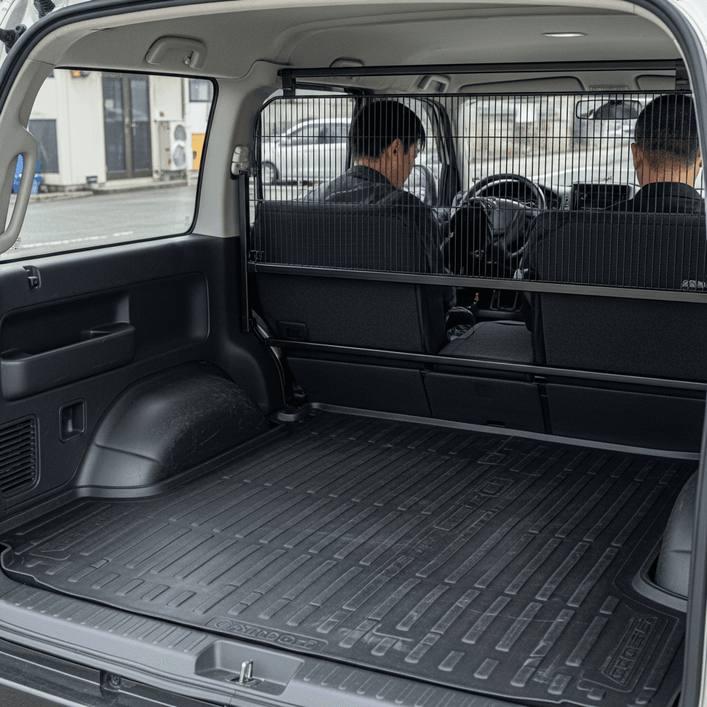 ハイエースワゴンは商用利用が前提。荷室に保護ゴムマット+仕切り板が装備されていれば「荷室ダメージ最小限」の証明に。実用性重視の商用車で+5~8万円の評価UP。