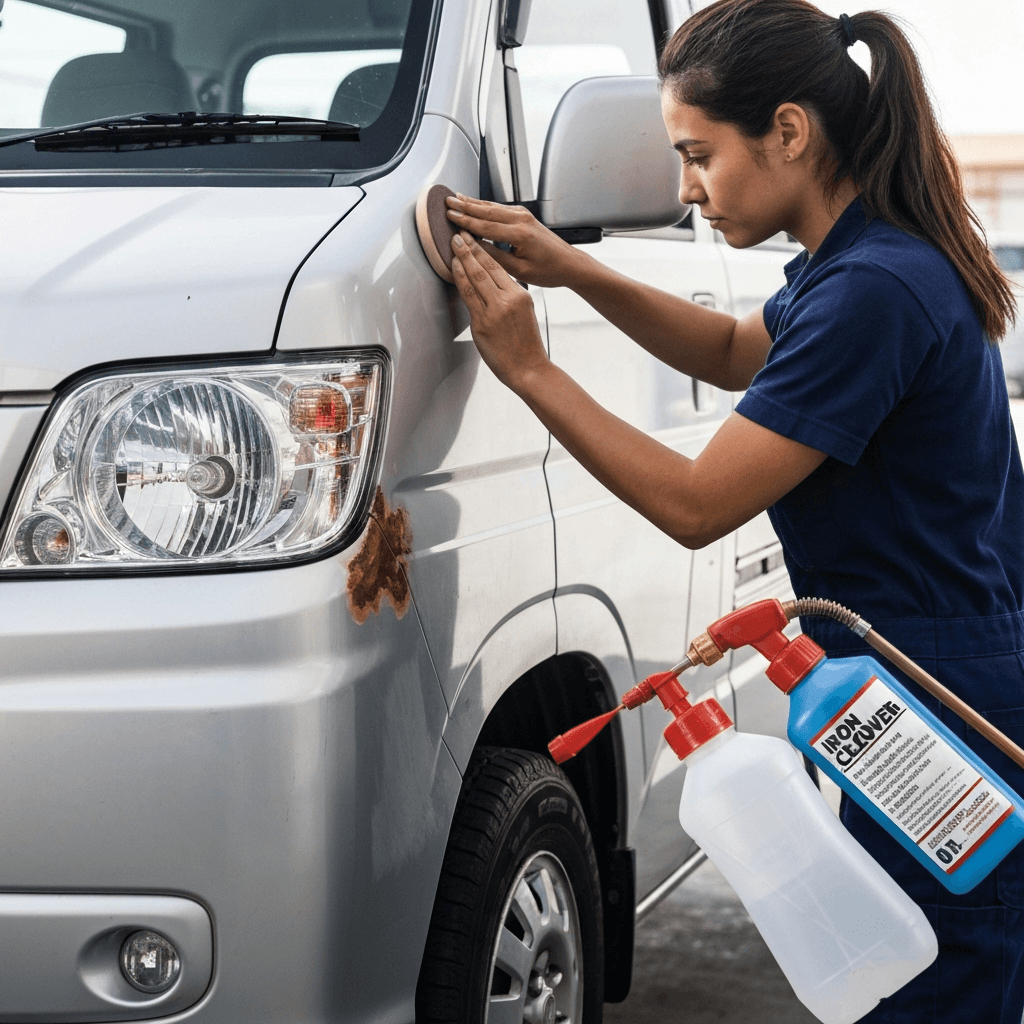 ハイゼットカーゴはヘッドライトの黄ばみとボディの鉄粉が第一印象を損ねます。研磨+鉄粉除去クリーナー+ワックスで輝きを取り戻せば「程度良好」と判断され+4~7万円の効果。