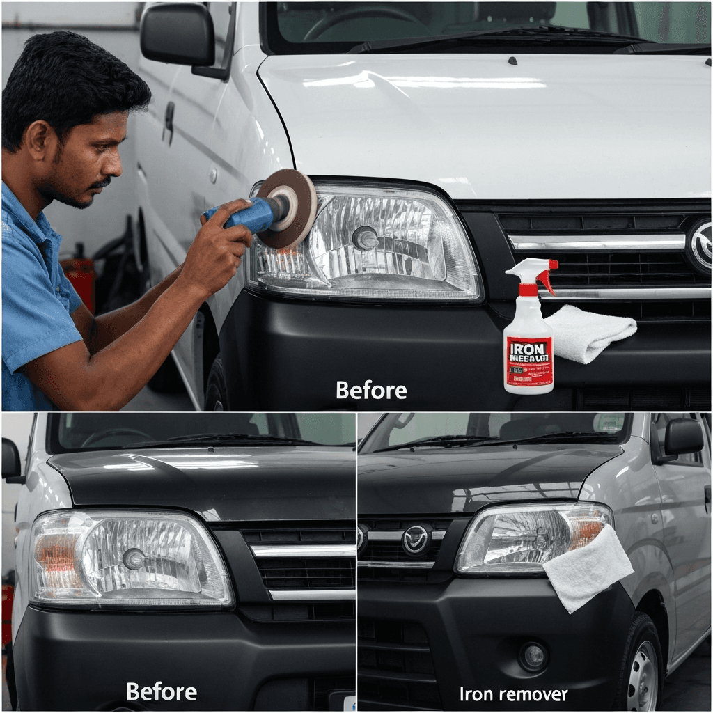 ハイゼットグランカーゴはヘッドライトの黄ばみとボディの鉄粉が第一印象を損ねます。研磨+鉄粉除去クリーナー+ワックスで輝きを取り戻せば「程度良好」と判断され+4~7万円の効果。