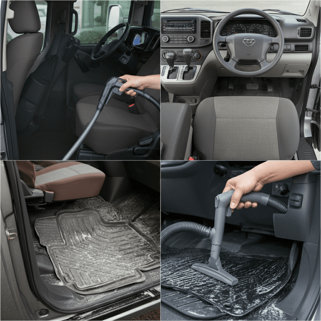 ハイゼットグランカーゴは第一印象が査定の8割を決めます。シート隙間のゴミ除去、マット洗浄、樹脂パーツ艶出しで新車級の清潔感に。特に臭いゼロなら「禁煙車」扱いで+5~8万円UP。