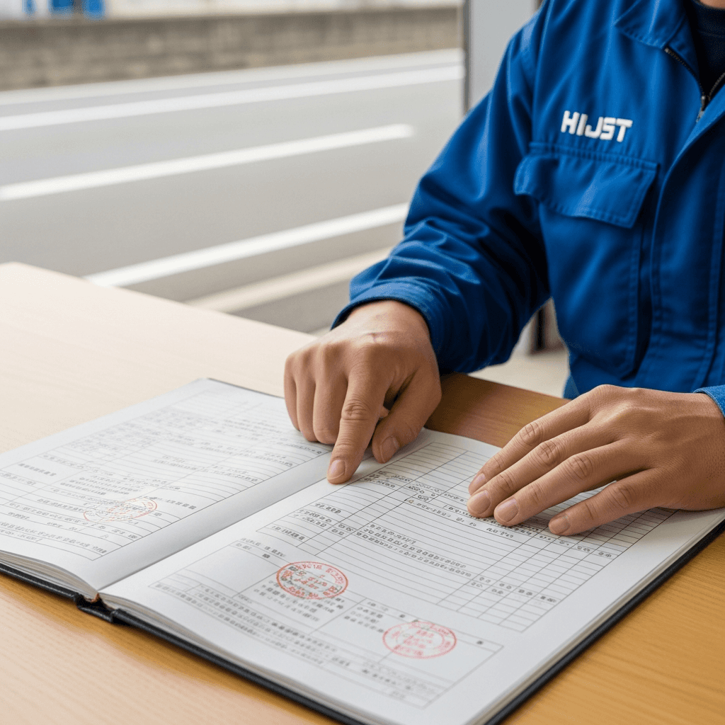 ハイゼットトラックの整備記録簿に定期点検(12ヶ月・24ヶ月)の履歴が全て記載されていれば「管理の行き届いた車」と高評価。特にエンジンオイル交換履歴は重要で+6~9万円の効果。