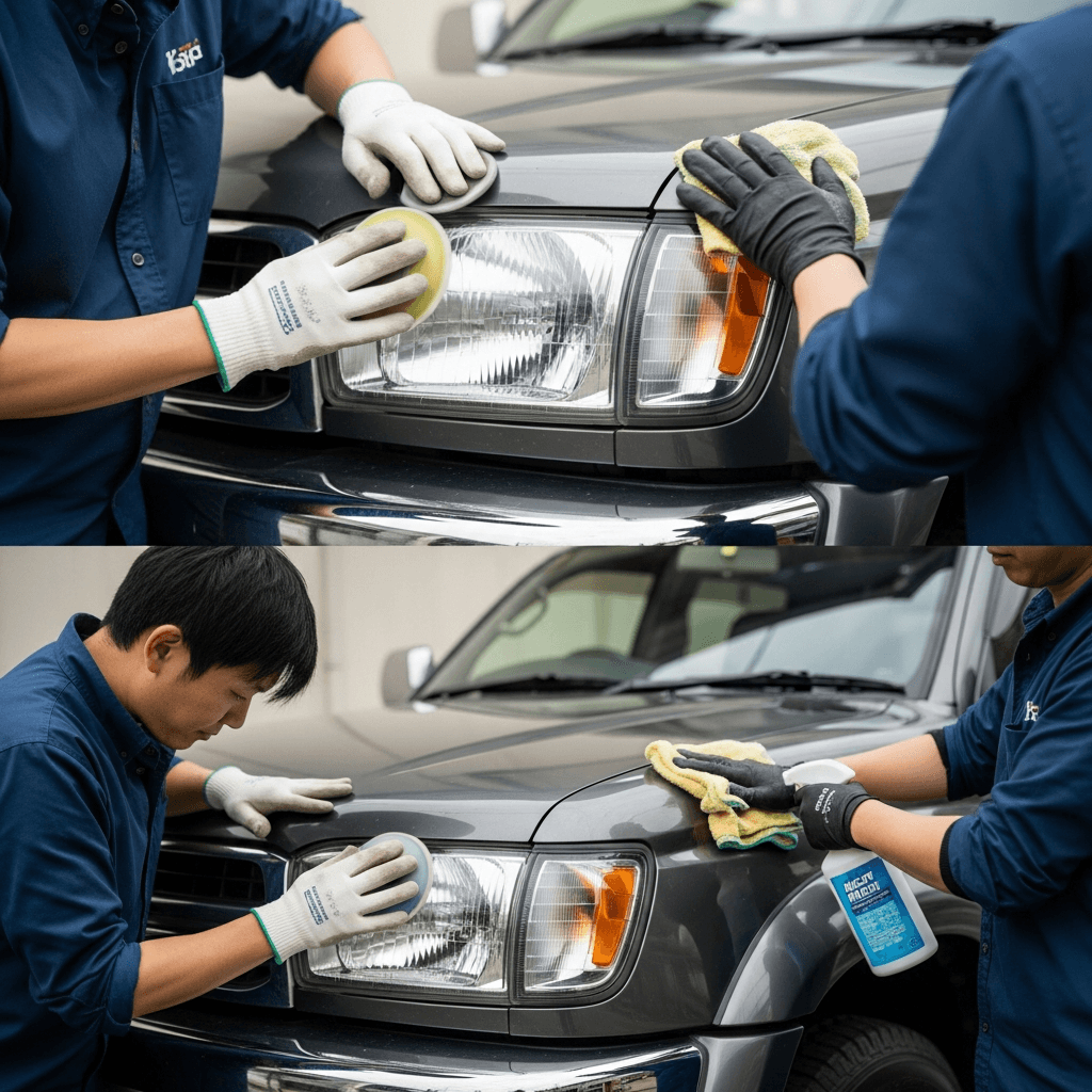 ヘッドライト黄ばみ除去+ボディ鉄粉除去で輝き復活!