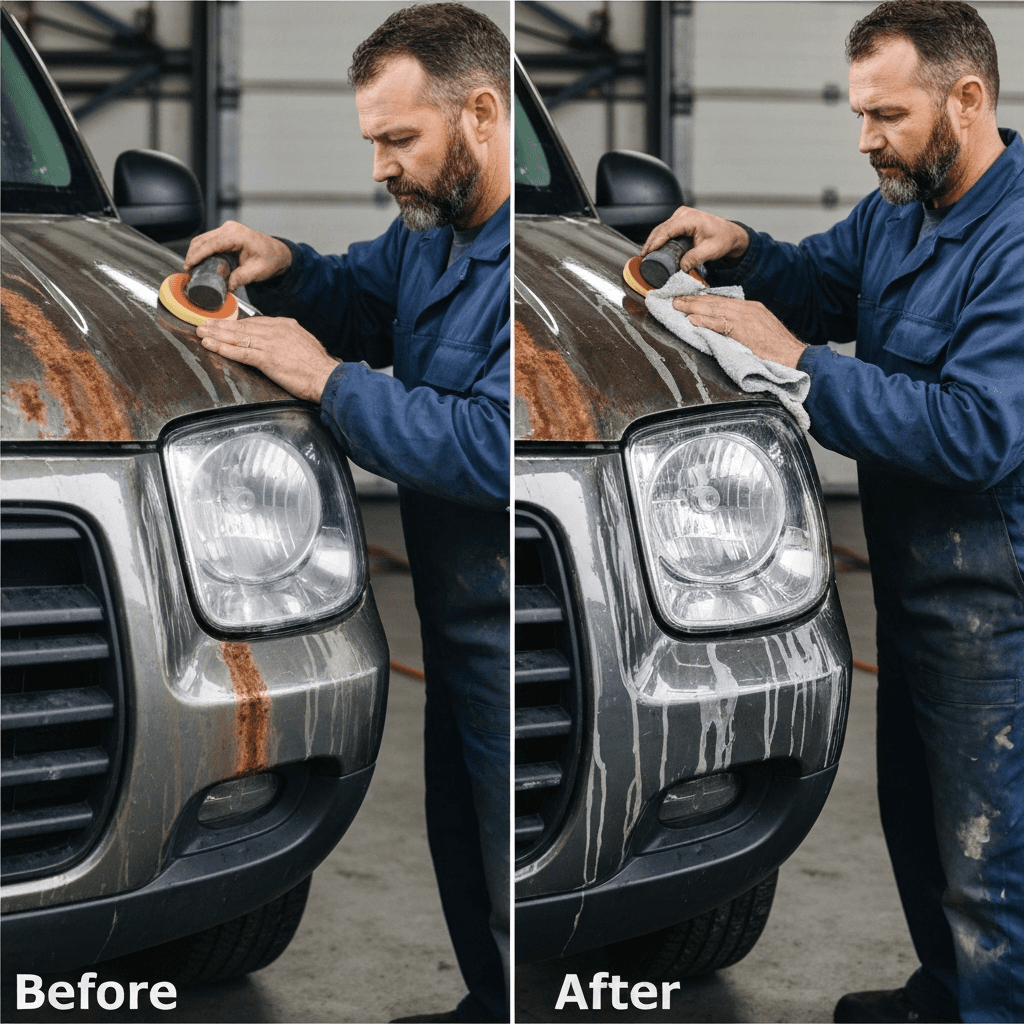 ヘッドライト黄ばみ除去+ボディ鉄粉除去で輝き復活!