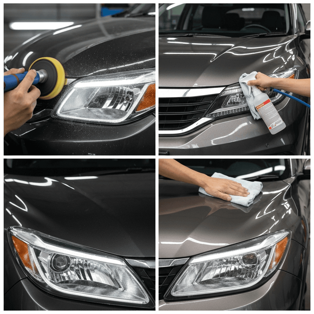 ヘッドライト黄ばみ除去+ボディ鉄粉除去で輝き復活!