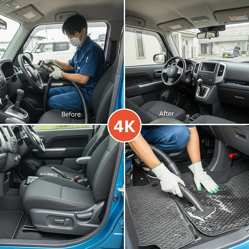 ハイパーミニは第一印象が査定の8割を決めます。シート隙間のゴミ除去、マット洗浄、樹脂パーツ艶出しで新車級の清潔感に。特に臭いゼロなら「禁煙車」扱いで+5~8万円UP。
