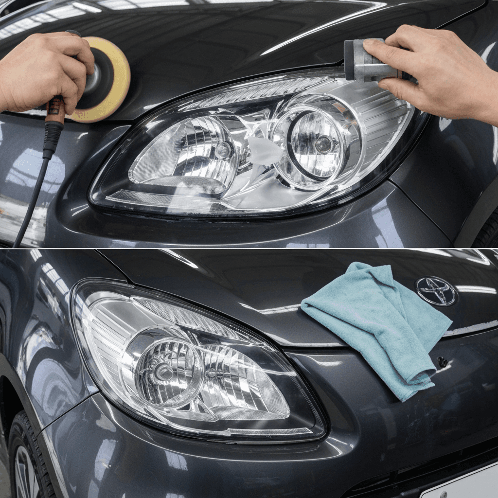ヘッドライト黄ばみ除去+ボディ鉄粉除去で輝き復活!