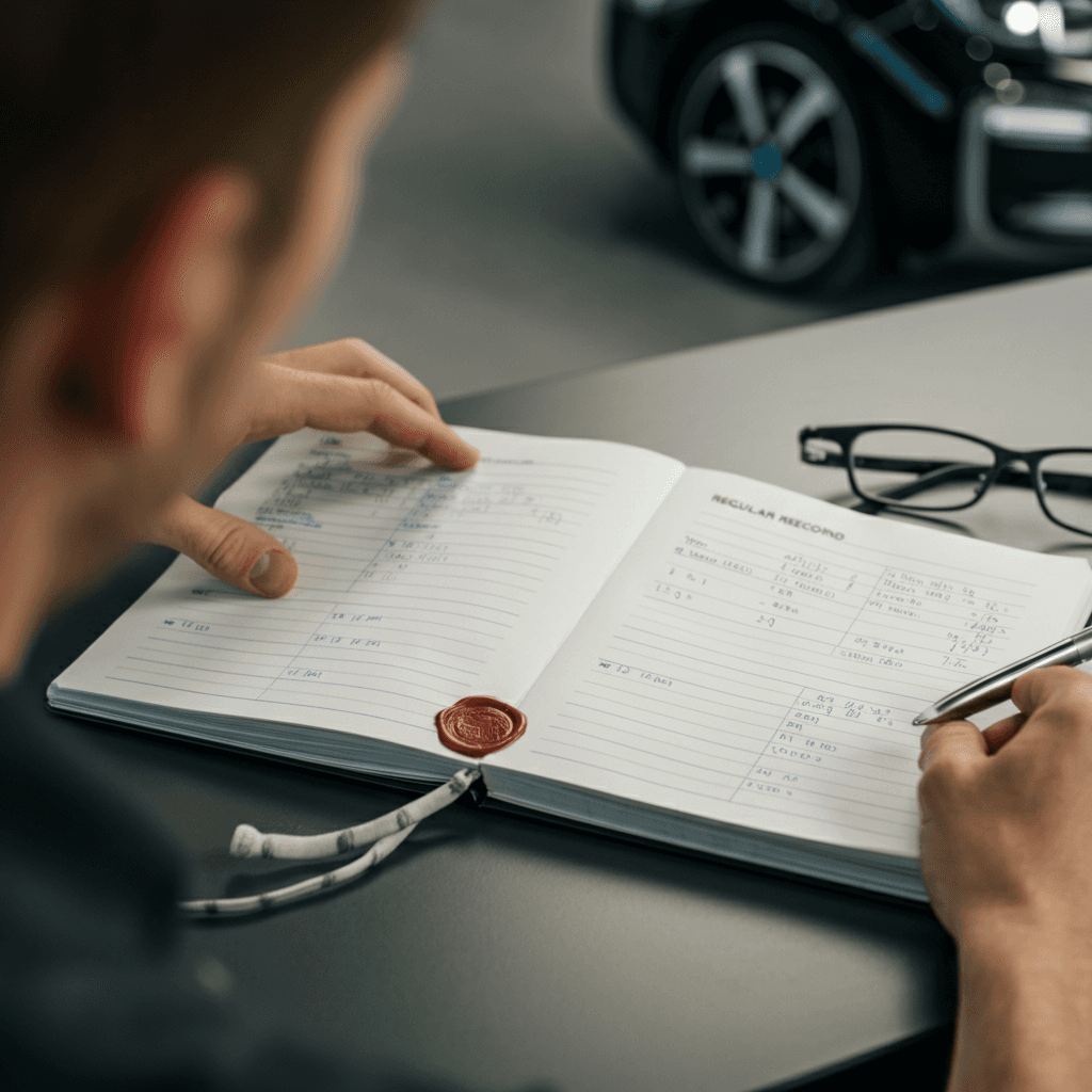 i3の整備記録簿に定期点検(12ヶ月・24ヶ月)の履歴が全て記載されていれば「管理の行き届いた車」と高評価。特にエンジンオイル交換履歴は重要で+6~9万円の効果。