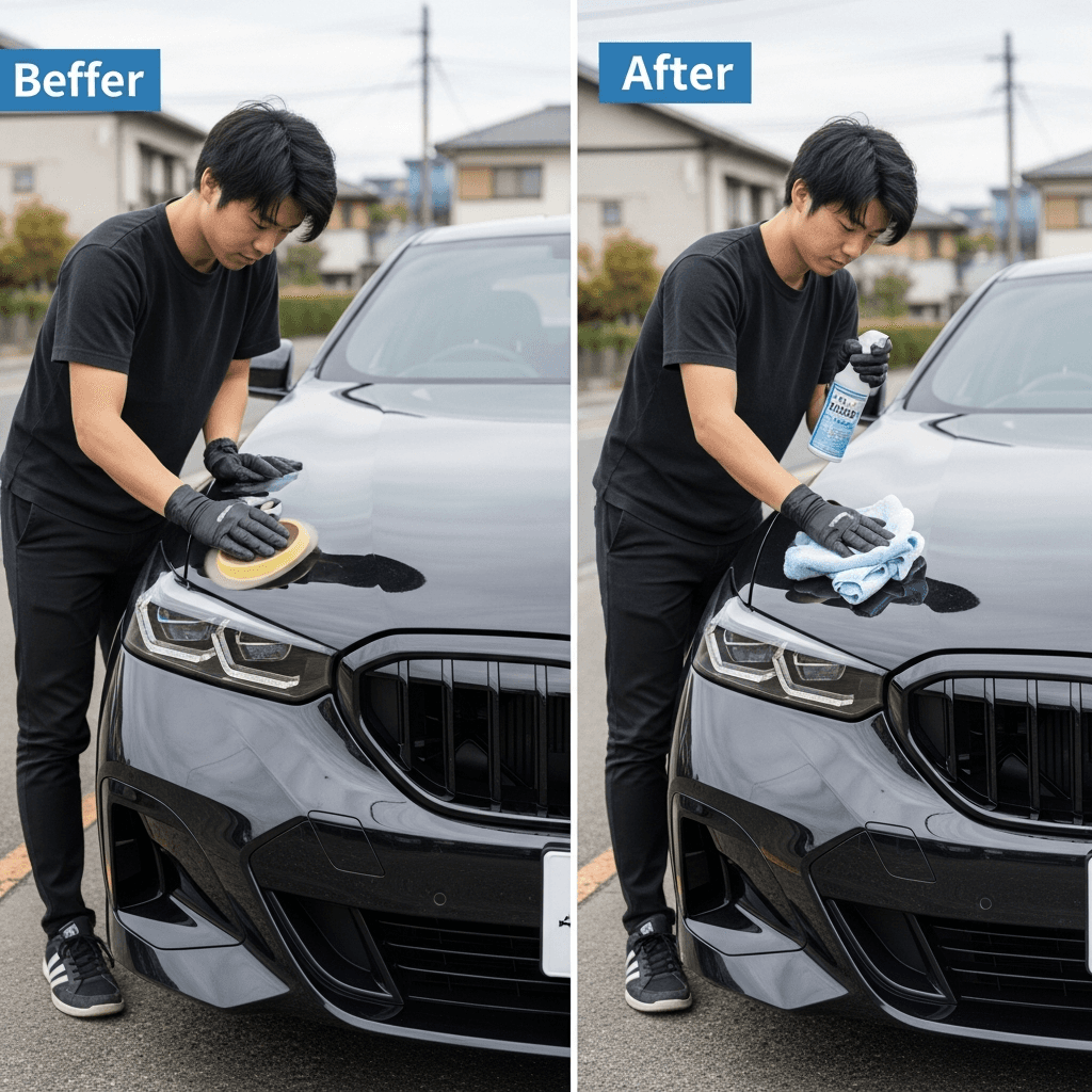 i5はヘッドライトの黄ばみとボディの鉄粉が第一印象を損ねます。研磨+鉄粉除去クリーナー+ワックスで輝きを取り戻せば「程度良好」と判断され+4~7万円の効果。