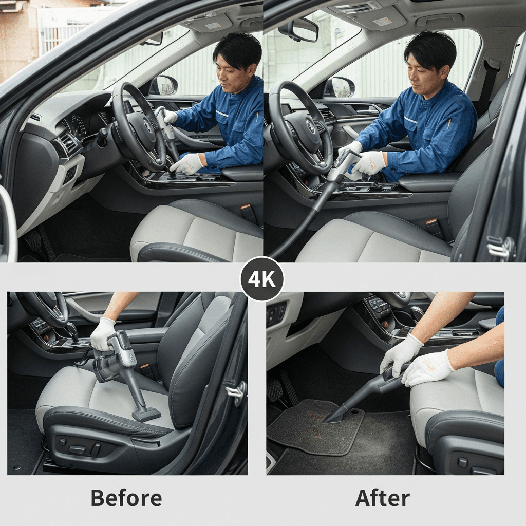 i5は第一印象が査定の8割を決めます。シート隙間のゴミ除去、マット洗浄、樹脂パーツ艶出しで新車級の清潔感に。特に臭いゼロなら「禁煙車」扱いで+5~8万円UP。