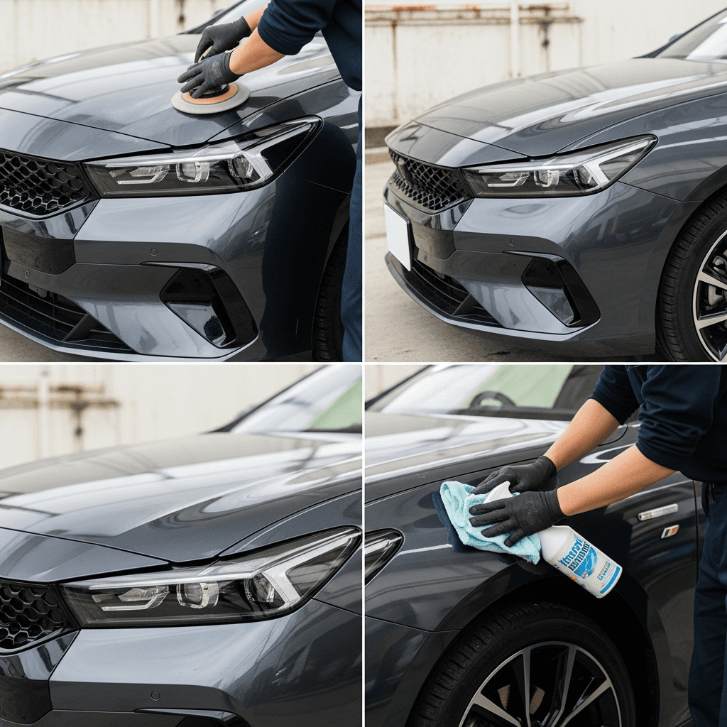 i5ツーリングはヘッドライトの黄ばみとボディの鉄粉が第一印象を損ねます。研磨+鉄粉除去クリーナー+ワックスで輝きを取り戻せば「程度良好」と判断され+4~7万円の効果。