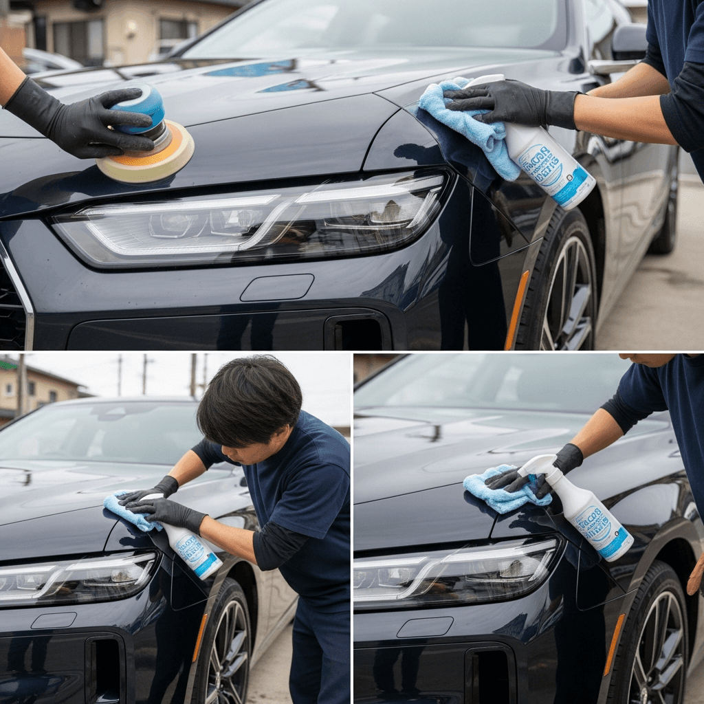 i7はヘッドライトの黄ばみとボディの鉄粉が第一印象を損ねます。研磨+鉄粉除去クリーナー+ワックスで輝きを取り戻せば「程度良好」と判断され+4~7万円の効果。