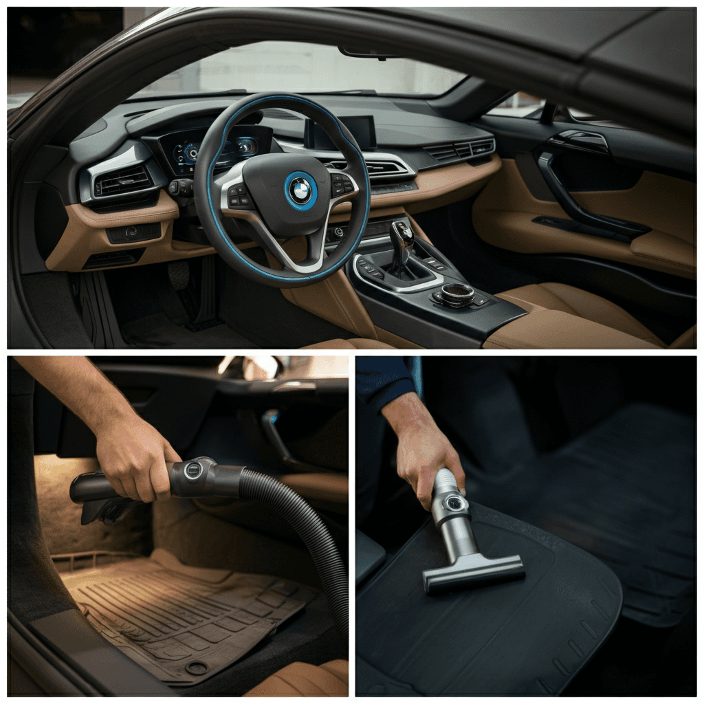 i8は第一印象が査定の8割を決めます。シート隙間のゴミ除去、マット洗浄、樹脂パーツ艶出しで新車級の清潔感に。特に臭いゼロなら「禁煙車」扱いで+5~8万円UP。