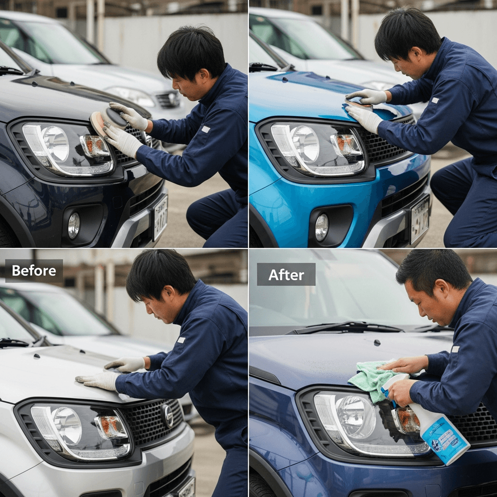 イグニスはヘッドライトの黄ばみとボディの鉄粉が第一印象を損ねます。研磨+鉄粉除去クリーナー+ワックスで輝きを取り戻せば「程度良好」と判断され+4~7万円の効果。