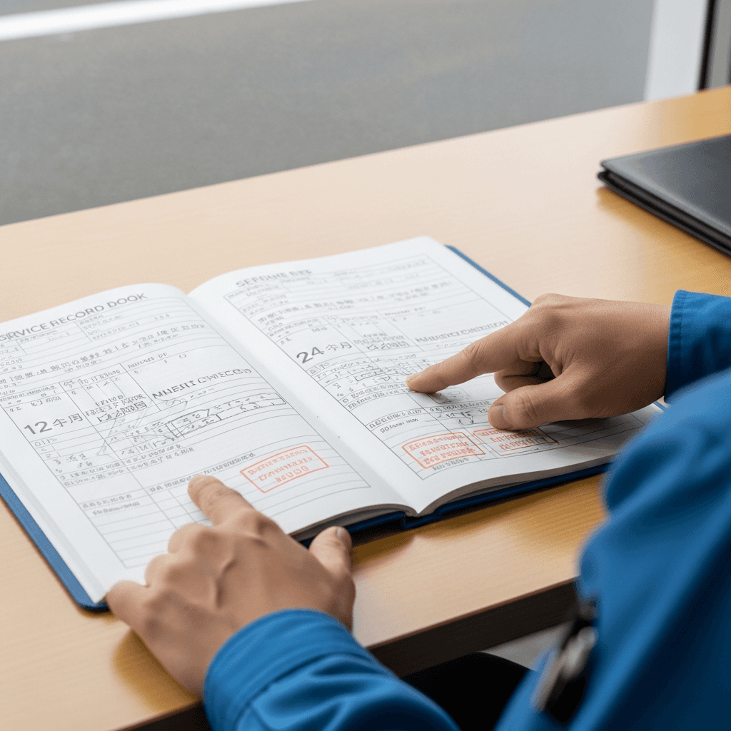 インプレッサクーペの整備記録簿に定期点検(12ヶ月・24ヶ月)の履歴が全て記載されていれば「管理の行き届いた車」と高評価。特にエンジンオイル交換履歴は重要で+6~9万円の効果。
