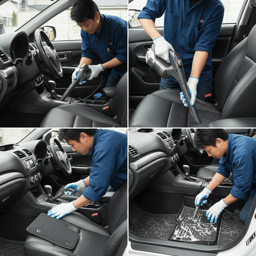 インプレッサスポーツワゴンSTIは第一印象が査定の8割を決めます。シート隙間のゴミ除去、マット洗浄、樹脂パーツ艶出しで新車級の清潔感に。特に臭いゼロなら「禁煙車」扱いで+5~8万円UP。