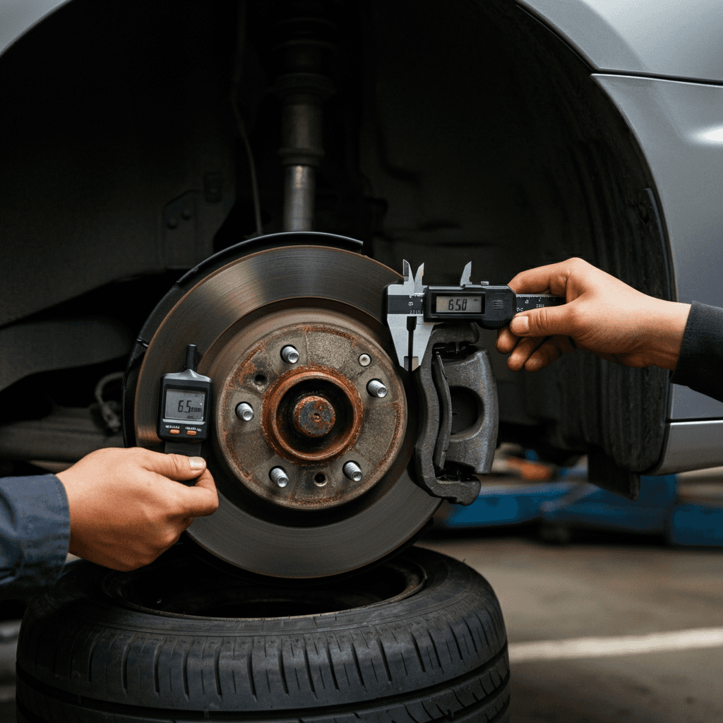 スポーツカーはブレーキとタイヤが査定の最重要項目。パッド残量6mm以上、タイヤ溝5mm以上を写真+ノギス測定値で証明すれば、「走行性能良好」の安心感を与え+8~12万円の評価UP。
