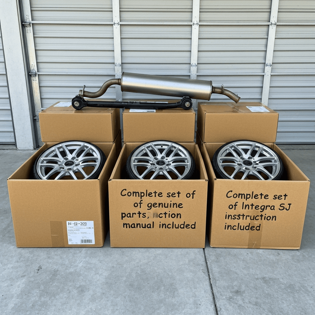 インテグラSJはカスタム車両が多いですが、純正マフラー・サスペンション・ホイールが保管されていれば査定額は下がりません。「純正戻し可能」をアピールすることで+7~10万円の価値創出。