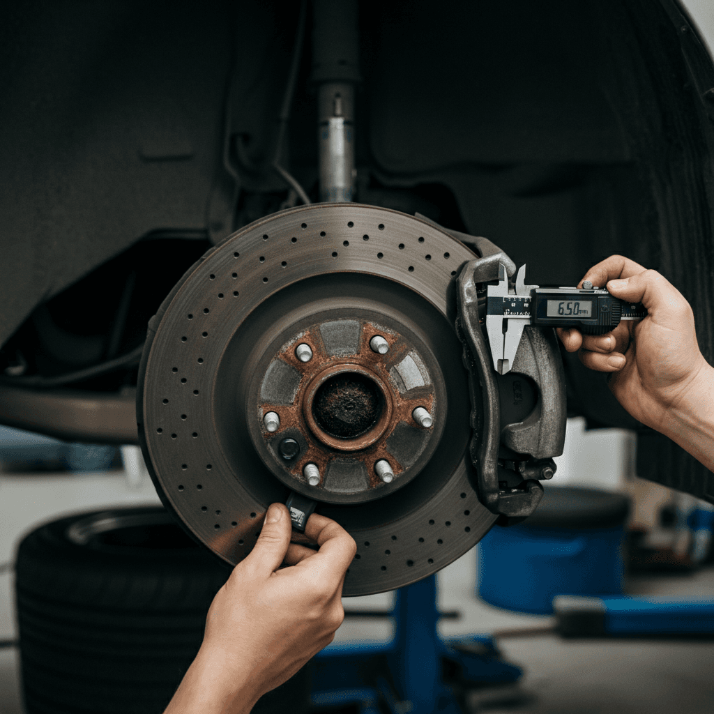スポーツカーはブレーキとタイヤが査定の最重要項目。パッド残量6mm以上、タイヤ溝5mm以上を写真+ノギス測定値で証明すれば、「走行性能良好」の安心感を与え+8~12万円の評価UP。