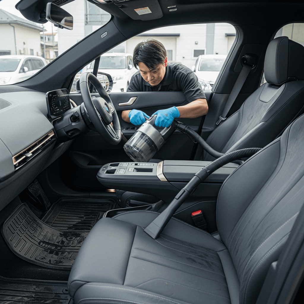 iXは第一印象が査定の8割を決めます。シート隙間のゴミ除去、マット洗浄、樹脂パーツ艶出しで新車級の清潔感に。特に臭いゼロなら「禁煙車」扱いで+5~8万円UP。