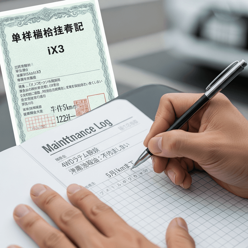 iX3のようなSUVは4WD性能が価値の源泉。4WDシステム点検とデフオイル交換記録があれば「オフロード性能維持」と高評価され、+8~12万円の査定UPが期待できます。