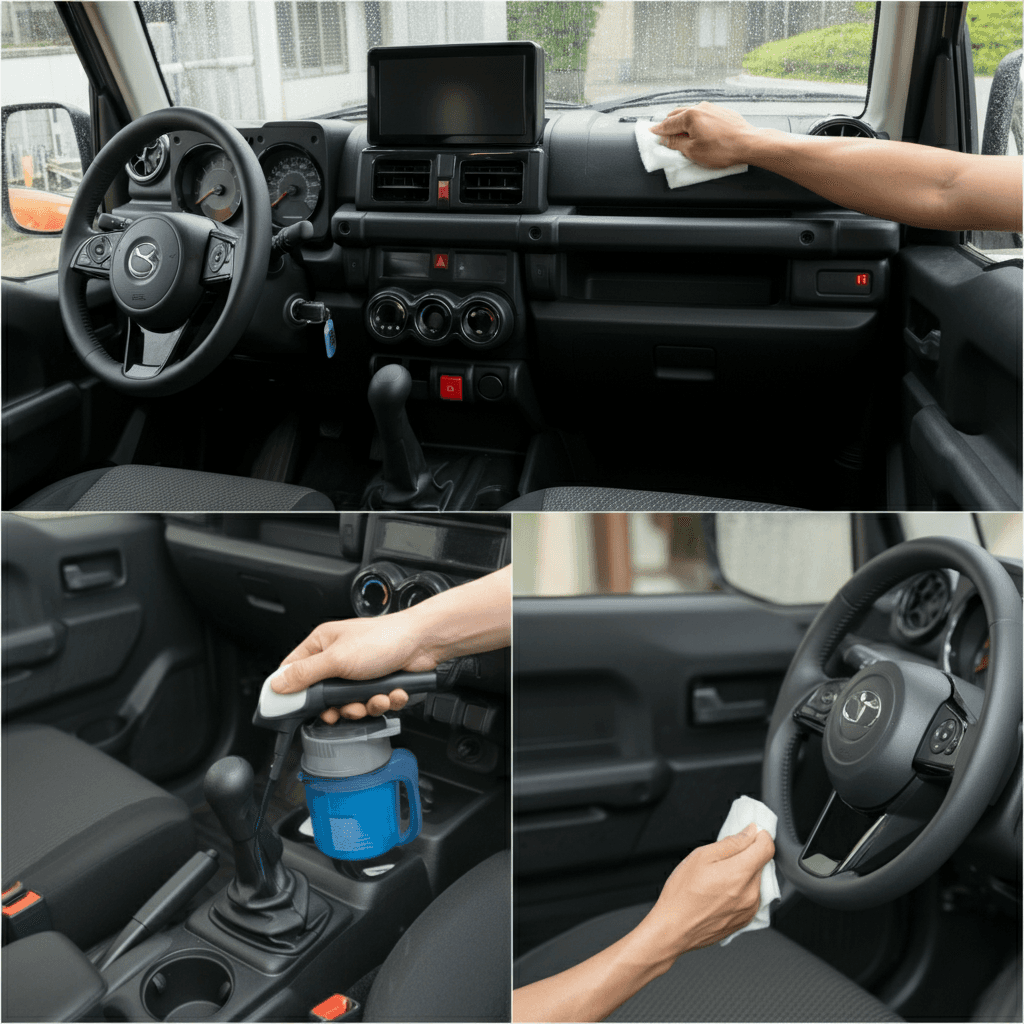 軽自動車は女性・高齢者の次オーナーが多く、清潔感が最重視されます。シート・フロアマット・ダッシュボードを徹底清掃し、消臭剤で無臭化すれば+4~7万円の効果。