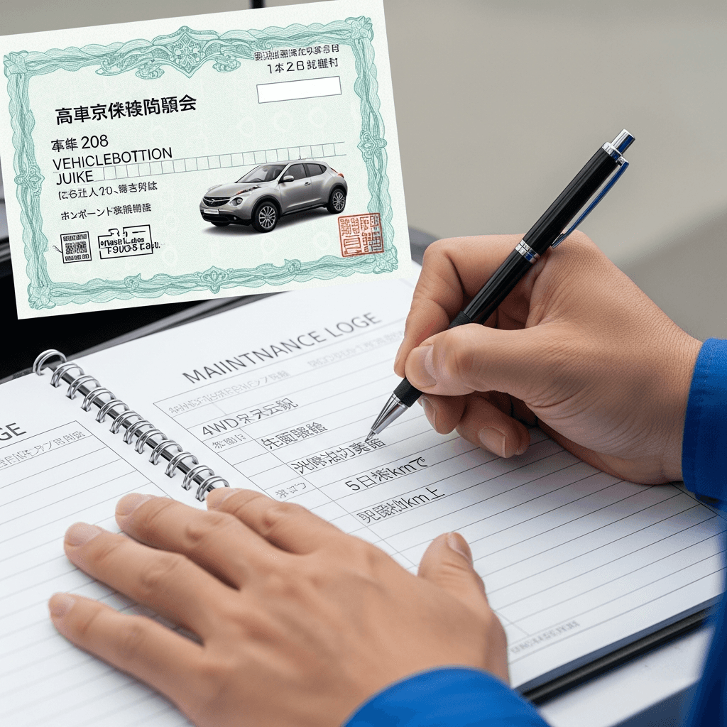 ジュークのようなSUVは4WD性能が価値の源泉。4WDシステム点検とデフオイル交換記録があれば「オフロード性能維持」と高評価され、+8~12万円の査定UPが期待できます。
