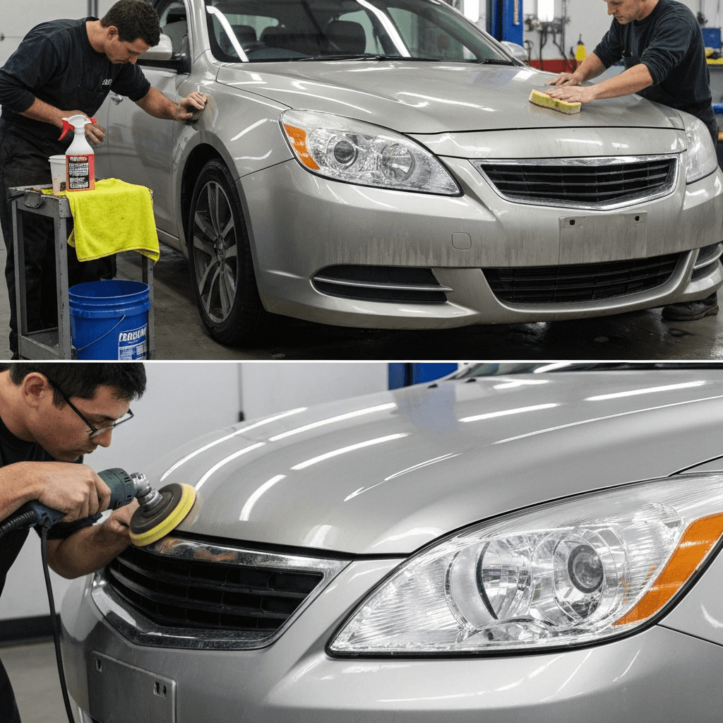 キザシはヘッドライトの黄ばみとボディの鉄粉が第一印象を損ねます。研磨+鉄粉除去クリーナー+ワックスで輝きを取り戻せば「程度良好」と判断され+4~7万円の効果。