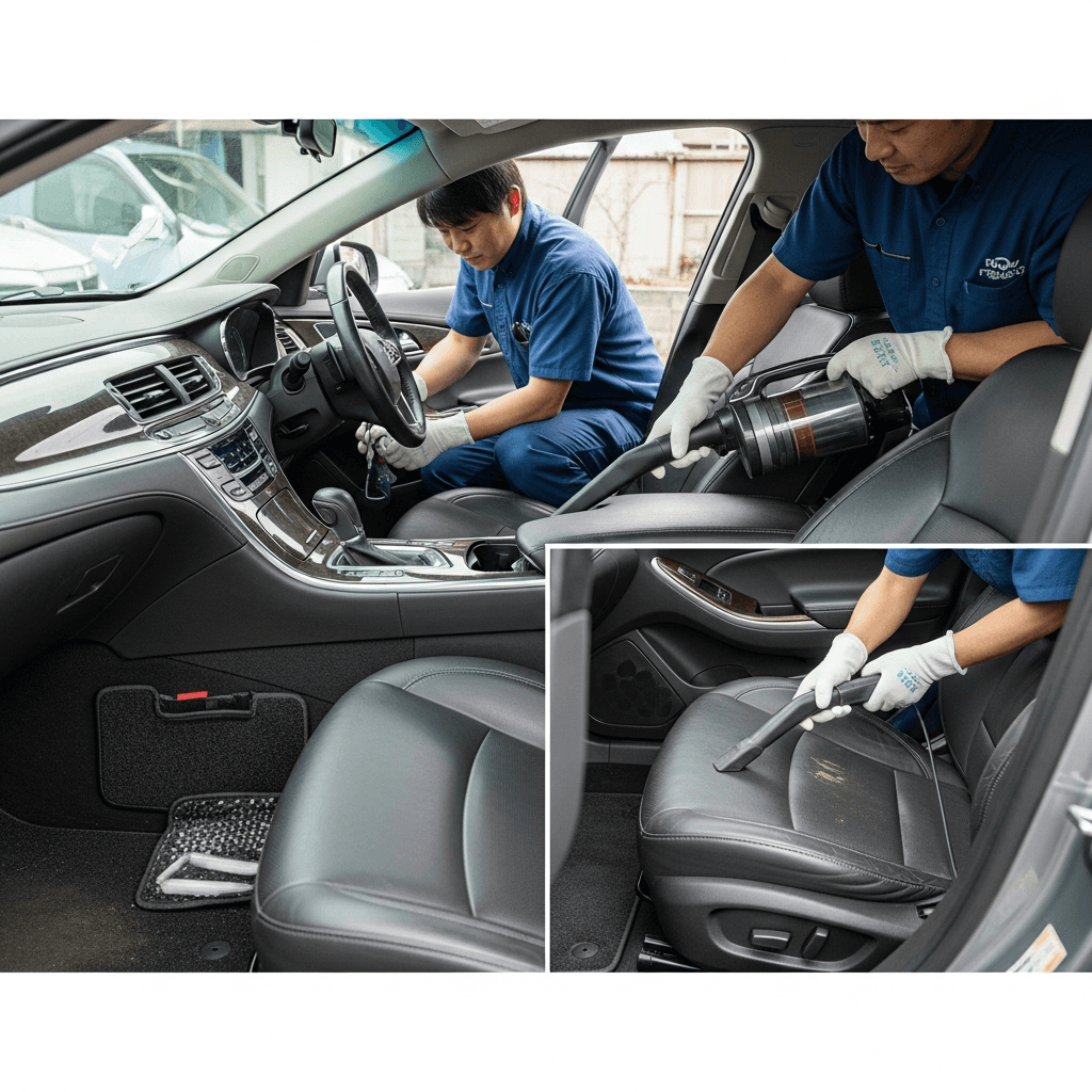 ラセードは第一印象が査定の8割を決めます。シート隙間のゴミ除去、マット洗浄、樹脂パーツ艶出しで新車級の清潔感に。特に臭いゼロなら「禁煙車」扱いで+5~8万円UP。