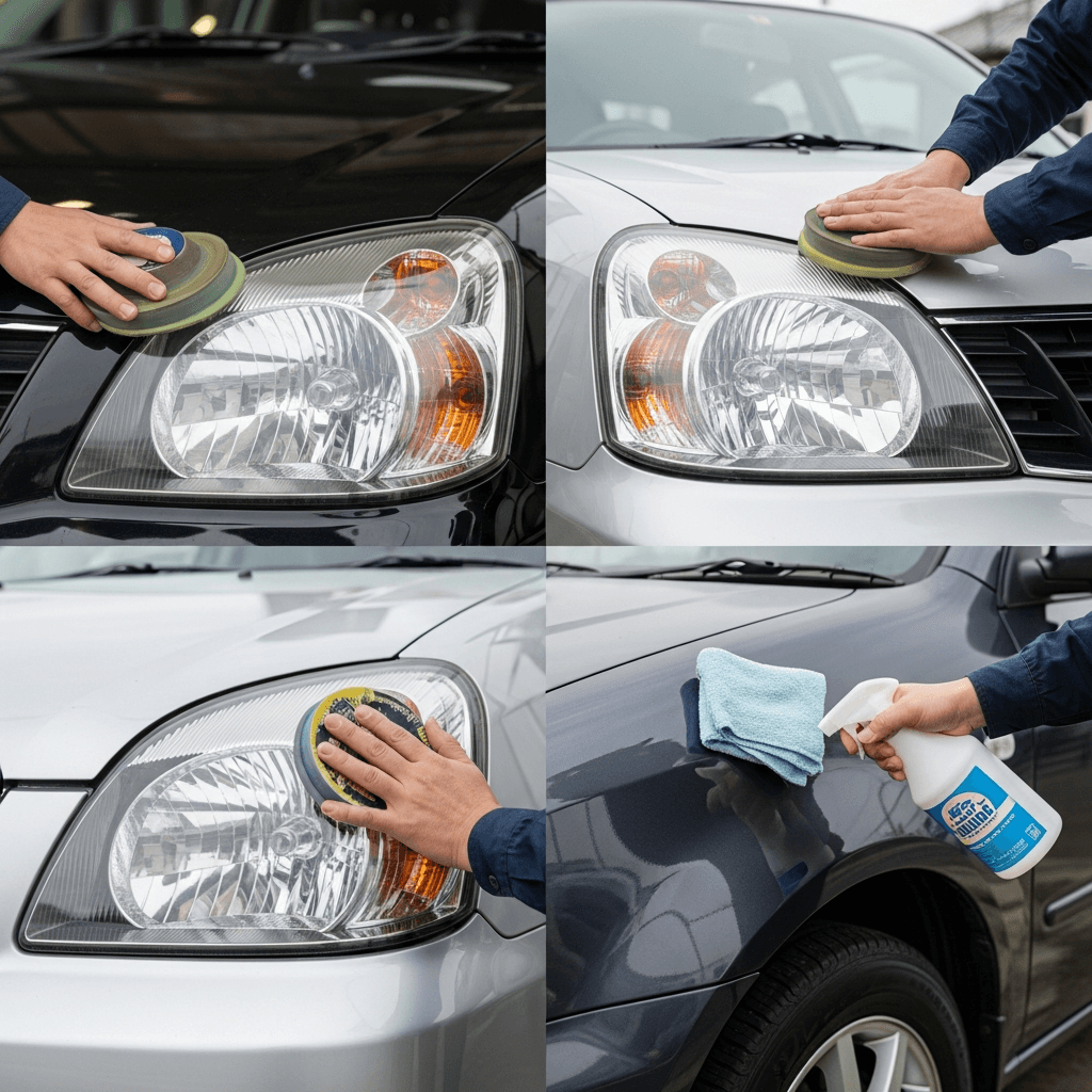 ヘッドライト黄ばみ除去+ボディ鉄粉除去で輝き復活!
