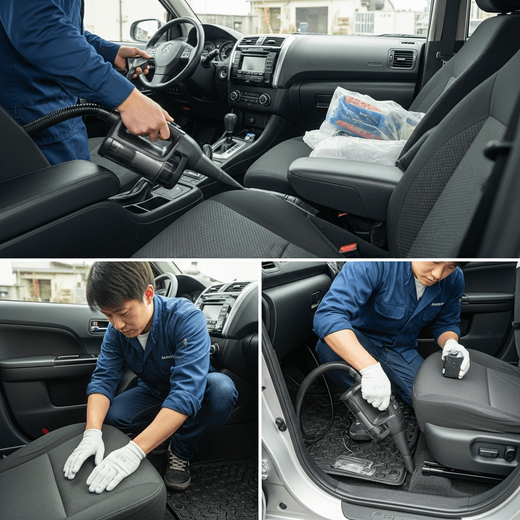 ラフェスタは第一印象が査定の8割を決めます。シート隙間のゴミ除去、マット洗浄、樹脂パーツ艶出しで新車級の清潔感に。特に臭いゼロなら「禁煙車」扱いで+5~8万円UP。