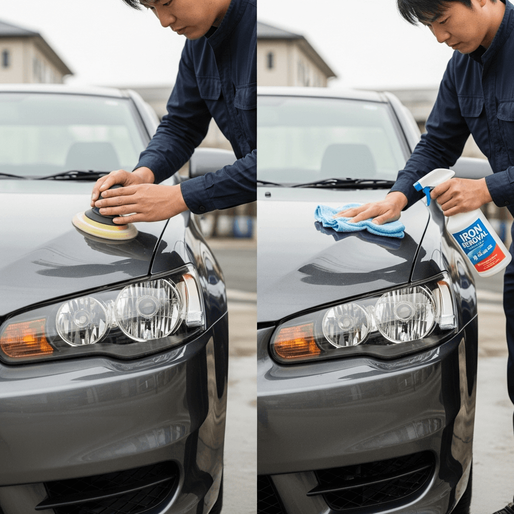 ヘッドライト黄ばみ除去+ボディ鉄粉除去で輝き復活!