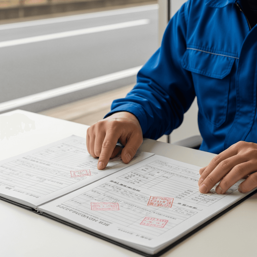 ランサーセディアの整備記録簿に定期点検(12ヶ月・24ヶ月)の履歴が全て記載されていれば「管理の行き届いた車」と高評価。特にエンジンオイル交換履歴は重要で+6~9万円の効果。