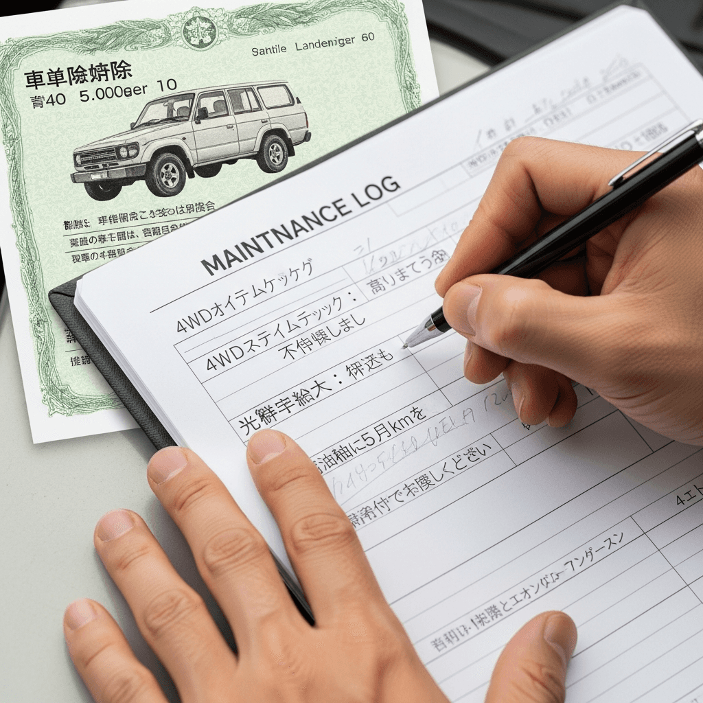 ランドクルーザー60のようなSUVは4WD性能が価値の源泉。4WDシステム点検とデフオイル交換記録があれば「オフロード性能維持」と高評価され、+8~12万円の査定UPが期待できます。