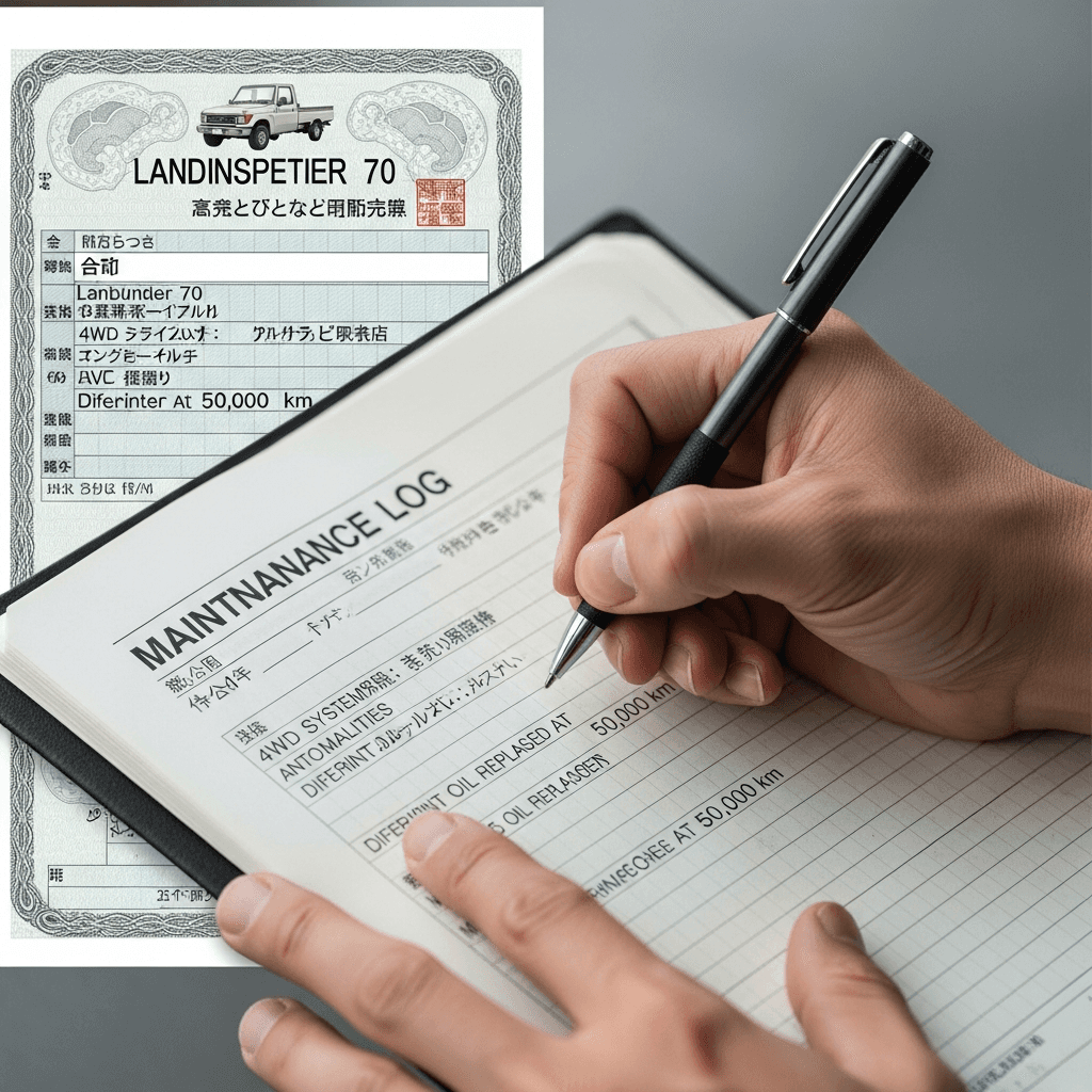 ランドクルーザー70ピックアップのようなSUVは4WD性能が価値の源泉。4WDシステム点検とデフオイル交換記録があれば「オフロード性能維持」と高評価され、+8~12万円の査定UPが期待できます。