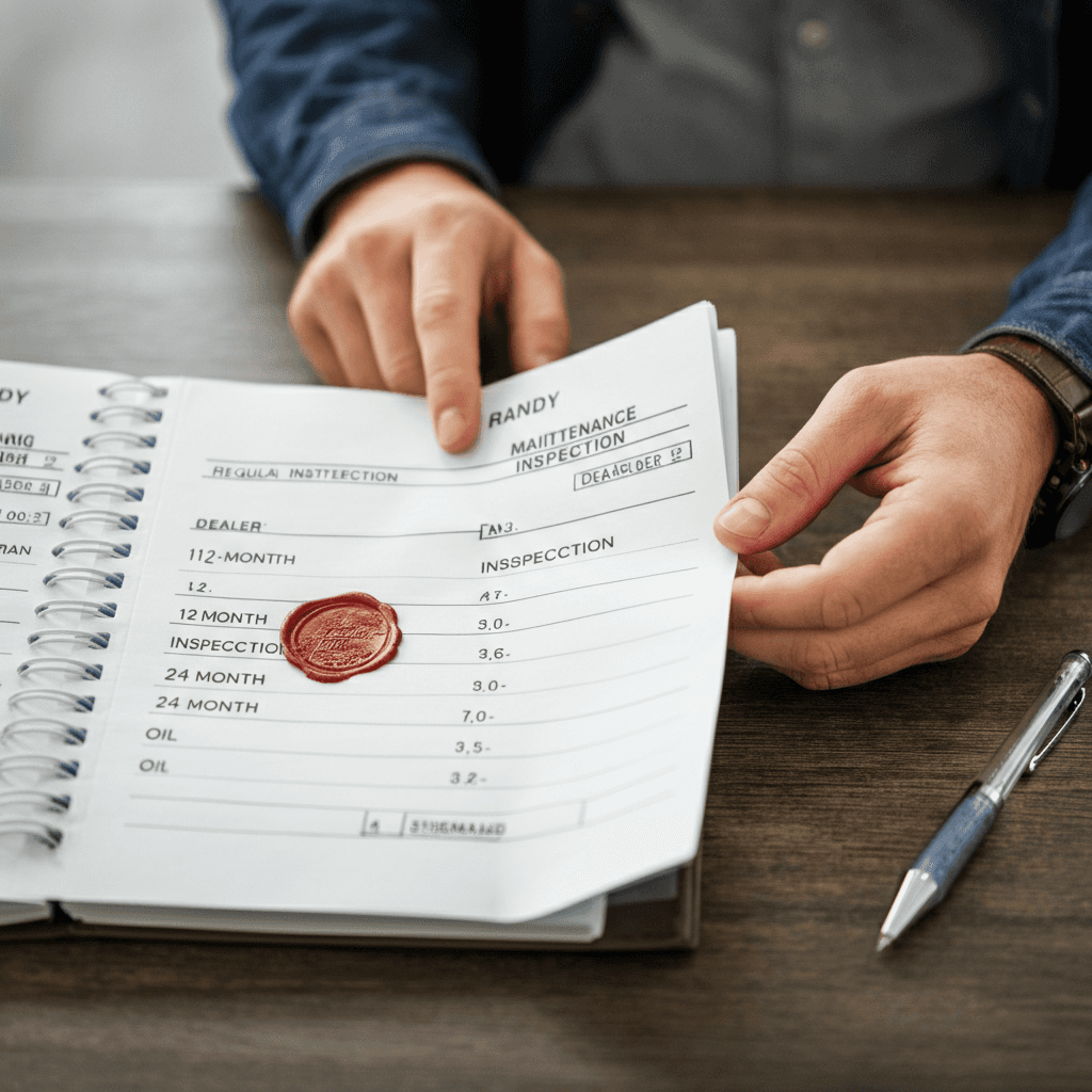 ランディの整備記録簿に定期点検(12ヶ月・24ヶ月)の履歴が全て記載されていれば「管理の行き届いた車」と高評価。特にエンジンオイル交換履歴は重要で+6~9万円の効果。