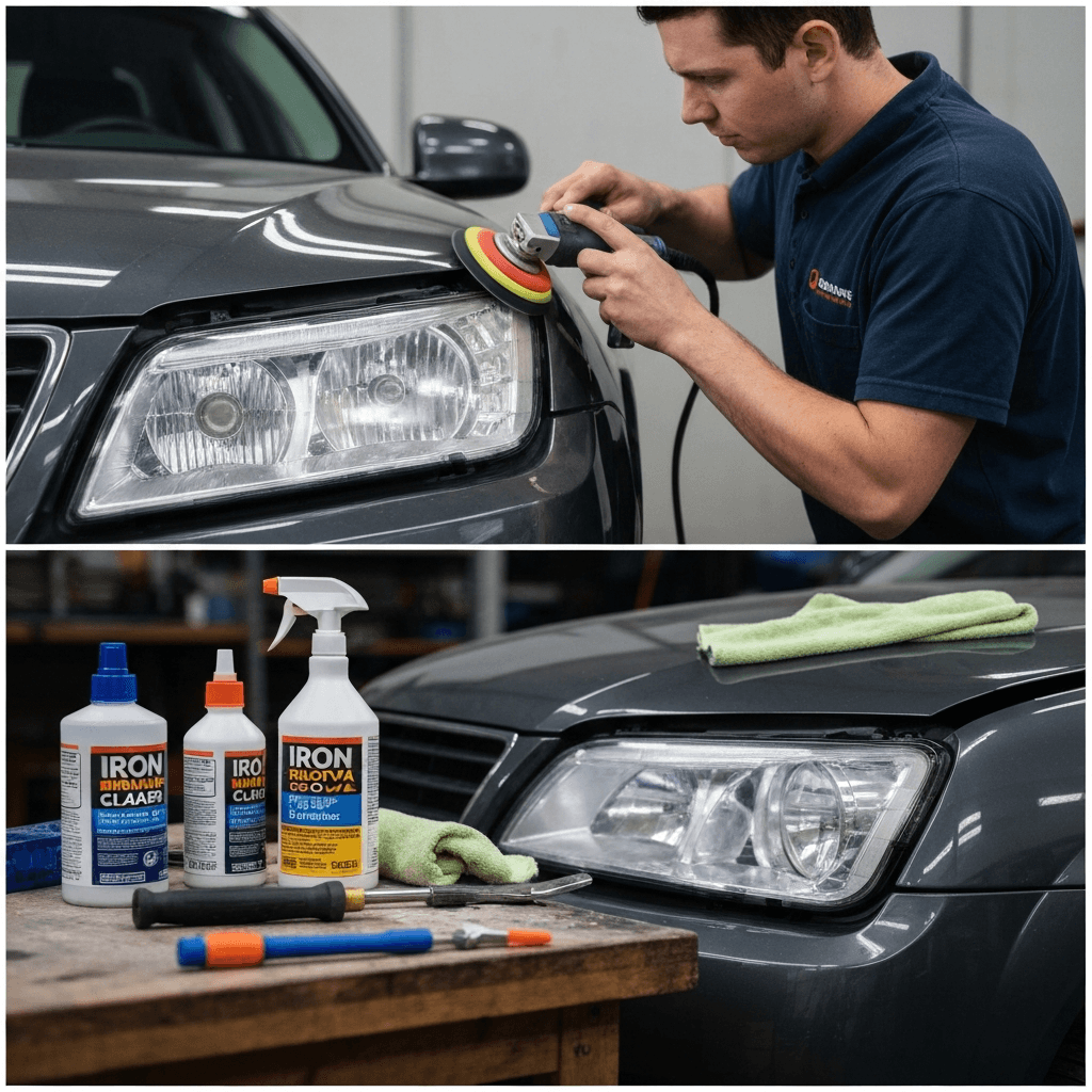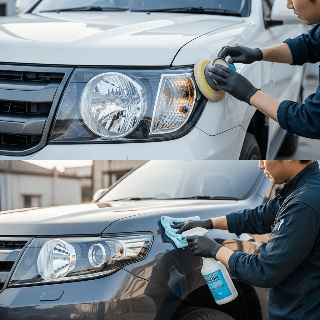 ヘッドライト黄ばみ除去+ボディ鉄粉除去で輝き復活!