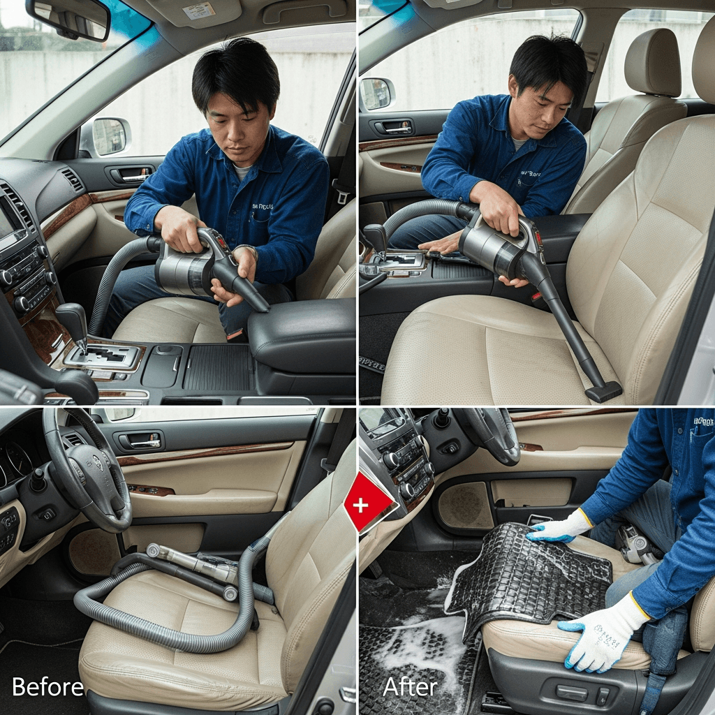 レガシィグランドワゴンは第一印象が査定の8割を決めます。シート隙間のゴミ除去、マット洗浄、樹脂パーツ艶出しで新車級の清潔感に。特に臭いゼロなら「禁煙車」扱いで+5~8万円UP。