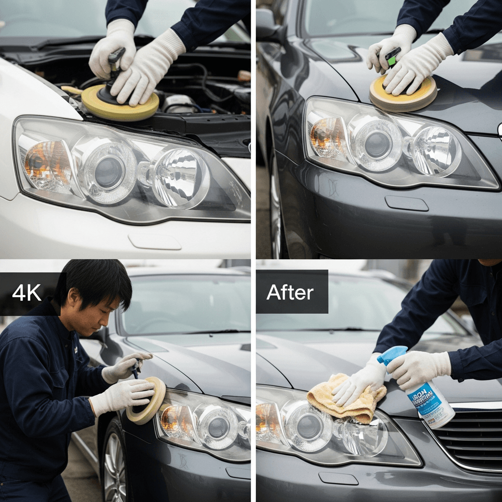 ヘッドライト黄ばみ除去+ボディ鉄粉除去で輝き復活!