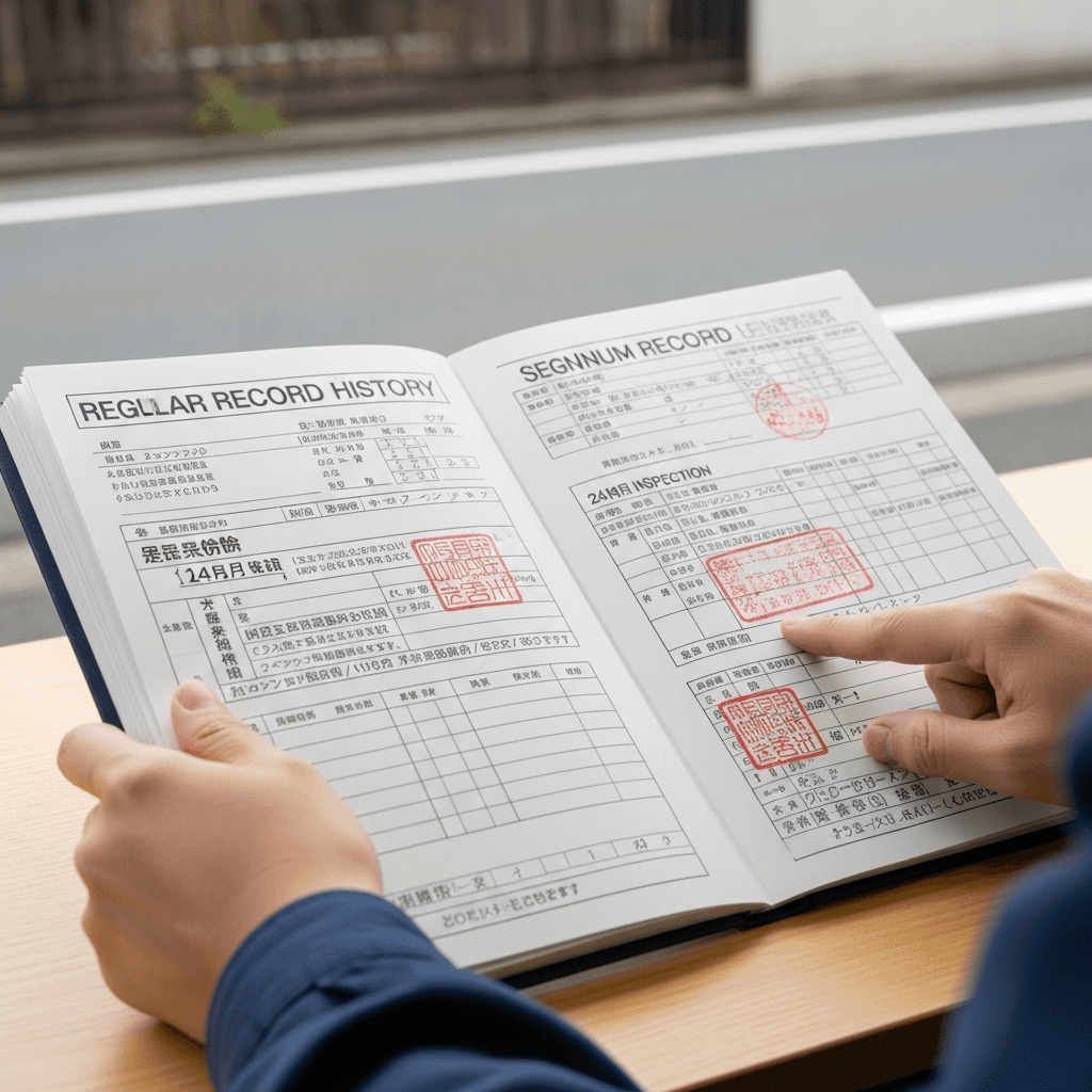 レグナムの整備記録簿に定期点検(12ヶ月・24ヶ月)の履歴が全て記載されていれば「管理の行き届いた車」と高評価。特にエンジンオイル交換履歴は重要で+6~9万円の効果。