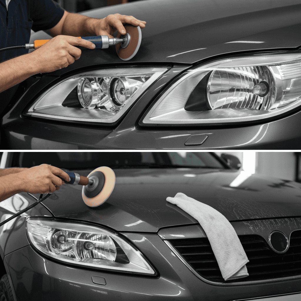 ヘッドライト黄ばみ除去+ボディ鉄粉除去で輝き復活!