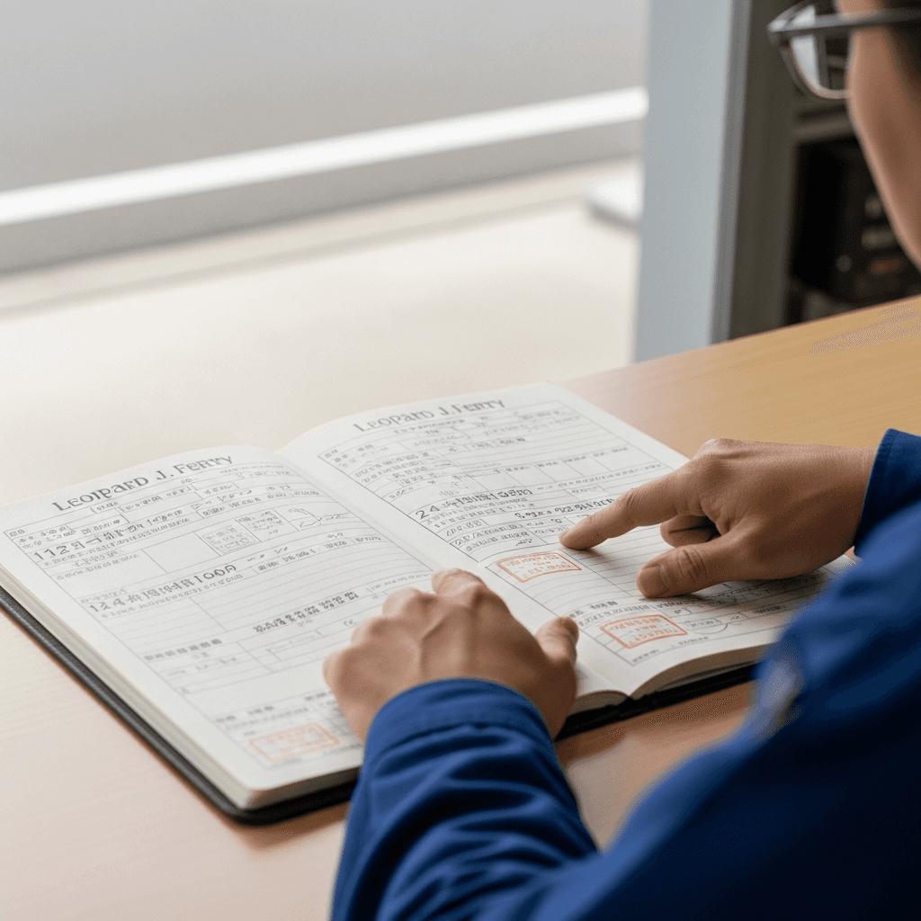 レパードJ.フェリーの整備記録簿に定期点検(12ヶ月・24ヶ月)の履歴が全て記載されていれば「管理の行き届いた車」と高評価。特にエンジンオイル交換履歴は重要で+6~9万円の効果。
