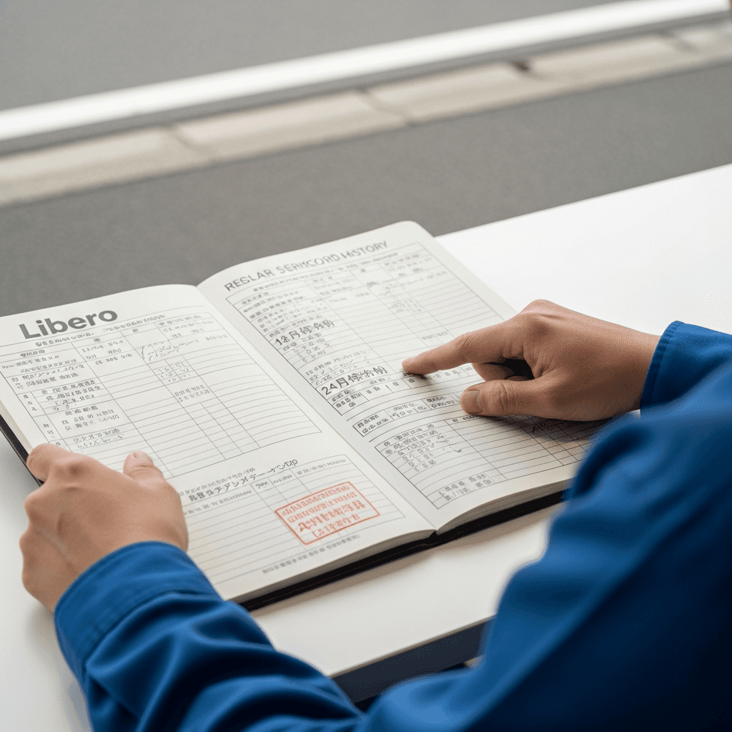 リベロの整備記録簿に定期点検(12ヶ月・24ヶ月)の履歴が全て記載されていれば「管理の行き届いた車」と高評価。特にエンジンオイル交換履歴は重要で+6~9万円の効果。