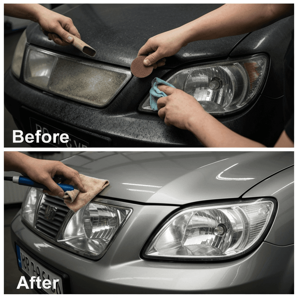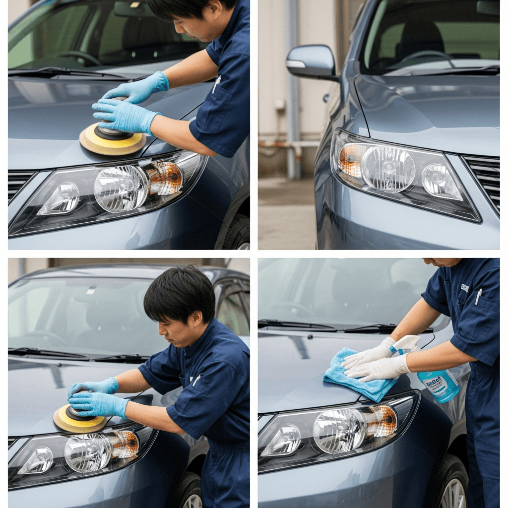 ヘッドライト黄ばみ除去+ボディ鉄粉除去で輝き復活!