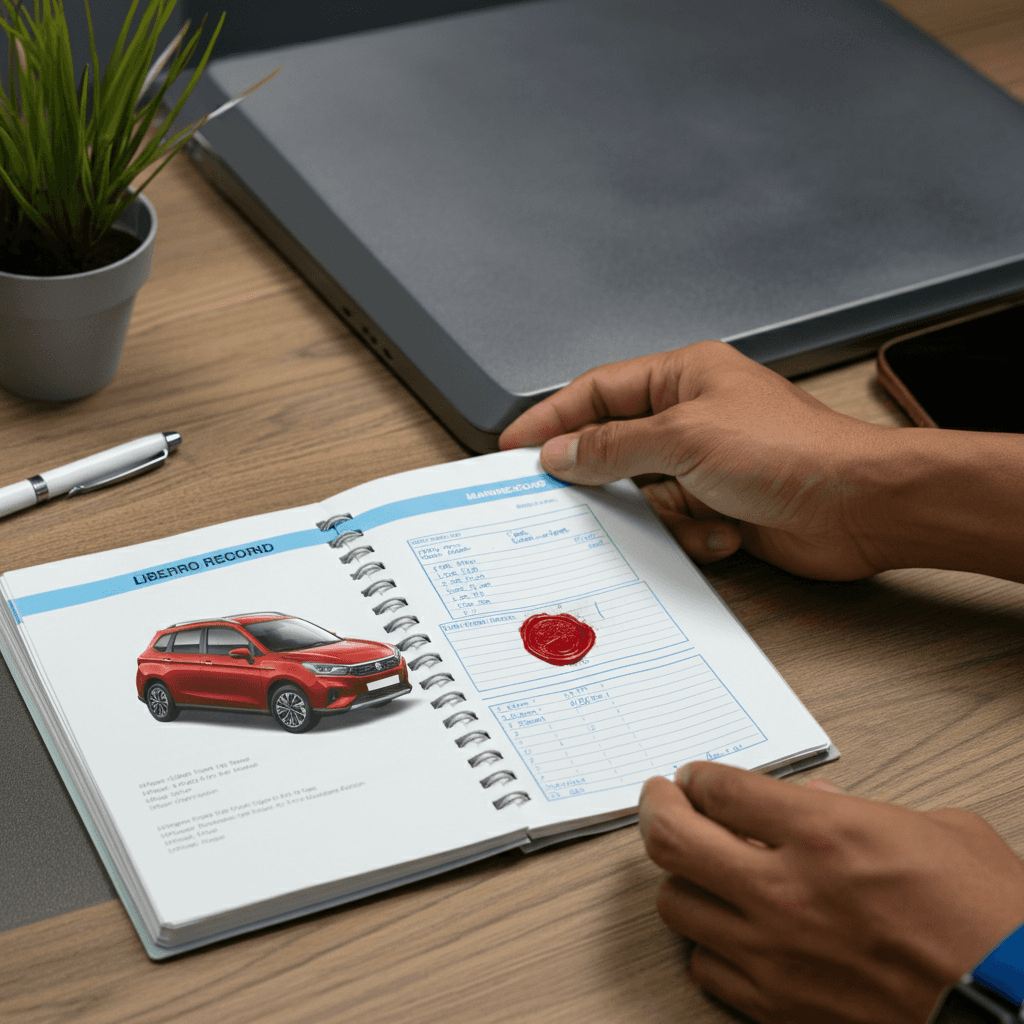 リベロカーゴワゴンの整備記録簿に定期点検(12ヶ月・24ヶ月)の履歴が全て記載されていれば「管理の行き届いた車」と高評価。特にエンジンオイル交換履歴は重要で+6~9万円の効果。
