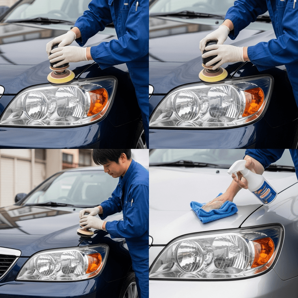 ヘッドライト黄ばみ除去+ボディ鉄粉除去で輝き復活!