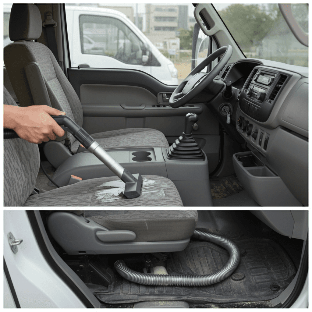 ライトエーストラックは第一印象が査定の8割を決めます。シート隙間のゴミ除去、マット洗浄、樹脂パーツ艶出しで新車級の清潔感に。特に臭いゼロなら「禁煙車」扱いで+5~8万円UP。