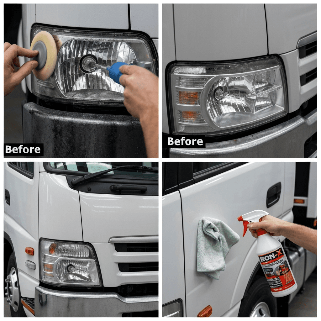 ヘッドライト黄ばみ除去+ボディ鉄粉除去で輝き復活!