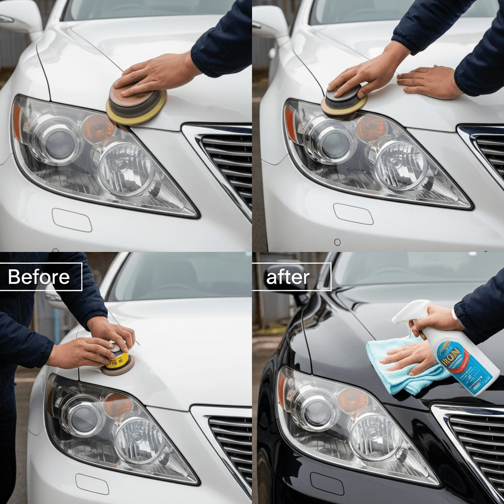 ヘッドライト黄ばみ除去+ボディ鉄粉除去で輝き復活!